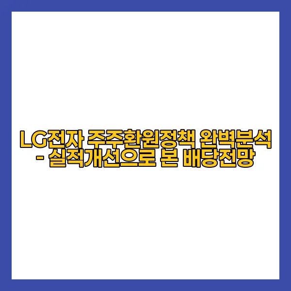 LG전자의 주주환원정책은 기업의 지속 가능성과 주주 가치를 극대화하는 중요한 요소입니다. 최근의 실적 개선은 향후 배당 안정성과 증가에 대한 기대감을 키우고 있습니다. 본 글에서는 LG전자의 주주환원정책의 핵심 요소를 분석하고, 최근 실적을 바탕으로 배당금 결정 요인과 미래 배당 전망을 심도 있게 다루고자 합니다. 이를 통해 투자자들에게 실질적이고 유용한 인사이트를 제공하고자 합니다. 각 항목을 깊이 있게 살펴보면서 LG전자의 배당전망에 대한 명확한 방향성을 제시하겠습니다.