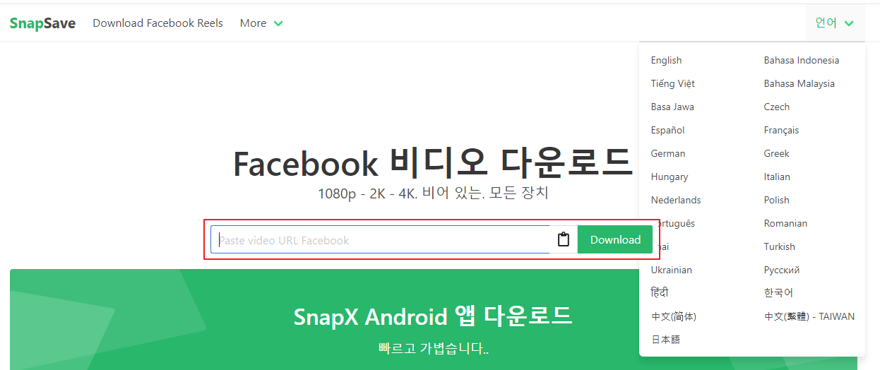 Facebook 비디오 다운로더 - Full HD 1080p| Download Facebook Videos - Snapsave